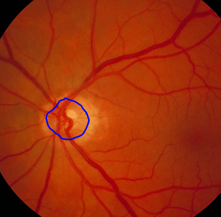 1. Outline the border of the optic nerve
