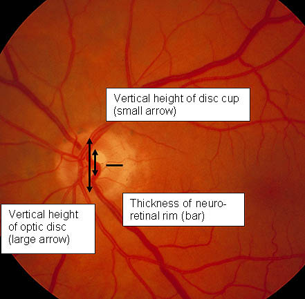 optic disc, define the optic disc cup and then calculate the cup to disc ratio.