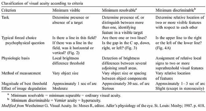| Minimum Resolvable (ordinary visual acuity) |