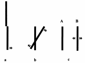 - Detect misalignment of two line segments in a frontal plane if these segments are separated by